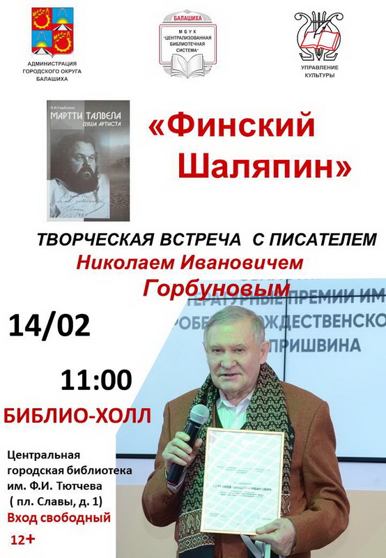 Творческая встреча с писателем Николаем Ивановичем Горбуновым «Финский Шаляпин - Мартти Талвела»